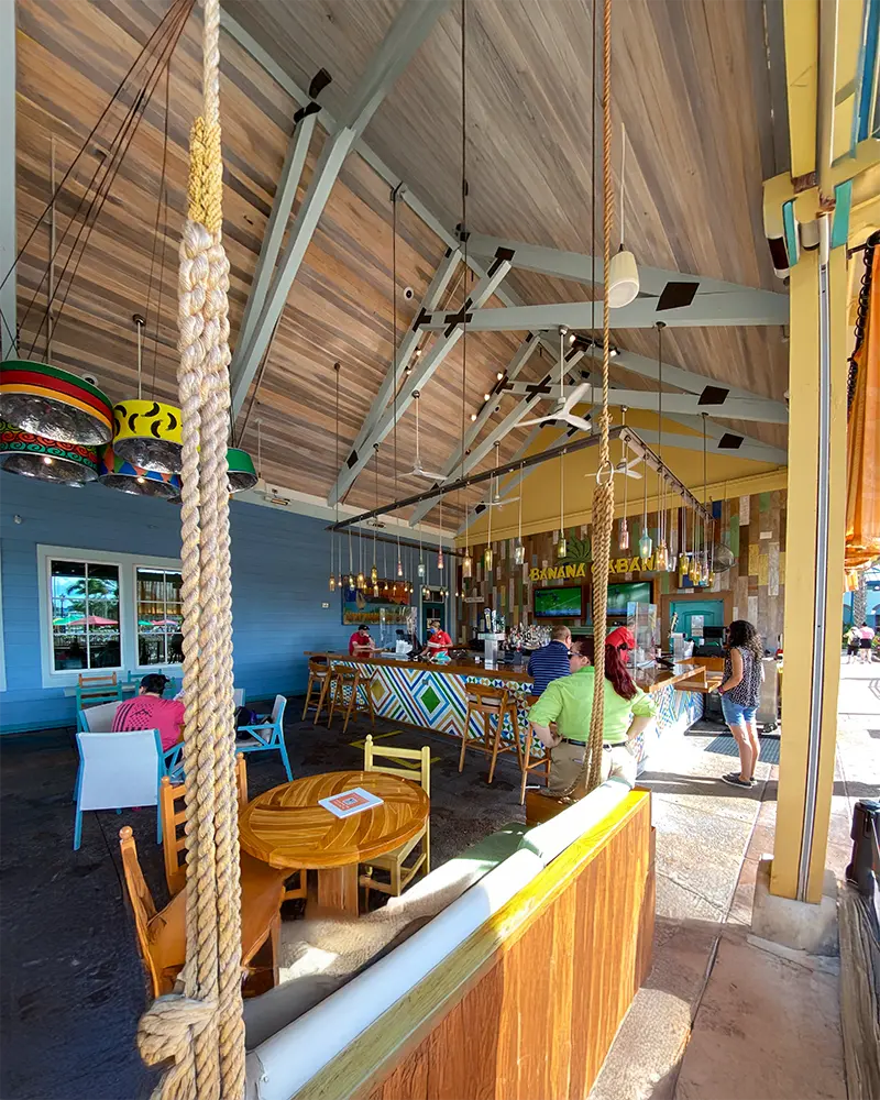 Un bar junto a la piscina con mucho ambiente tropical. Aquí encuentran tragos caribeños, cócteles clásicos y cervezas, además de aperitivos ideales para disfrutar del sol, como nachos, alitas y sliders. Con música suave y vistas relajantes, es un excelente spot para descansar después de un día en los parques.