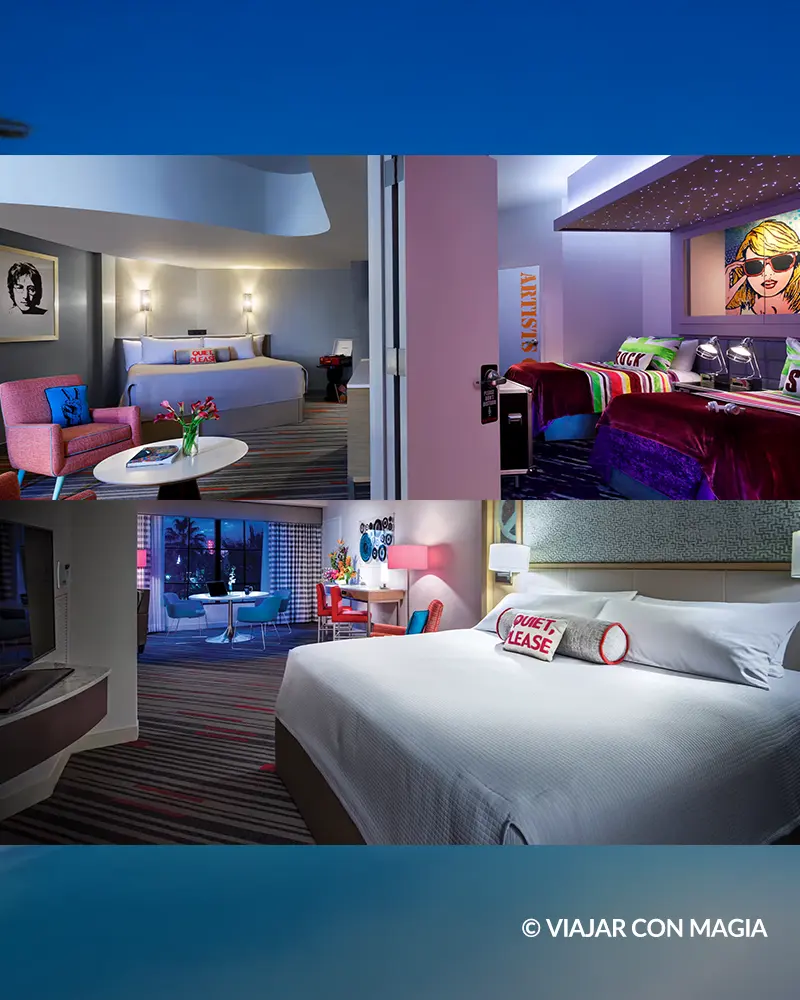 Las habitaciones del Hard Rock Hotel combinan comodidad de primer nivel con un estilo moderno y vibrante inspirado en el mundo de la música. Hay opciones tanto para parejas como para familias, con detalles únicos en cada categoría.